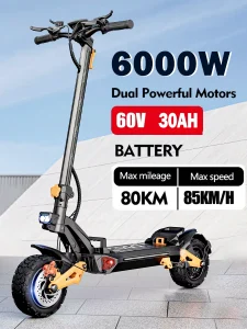 2025 New 6000w Dual Motor 60v 30ah Electric Scooter Max Speed 80km/h Range 75km Foldable 11 Inch Off-road Tires Electric Scooter